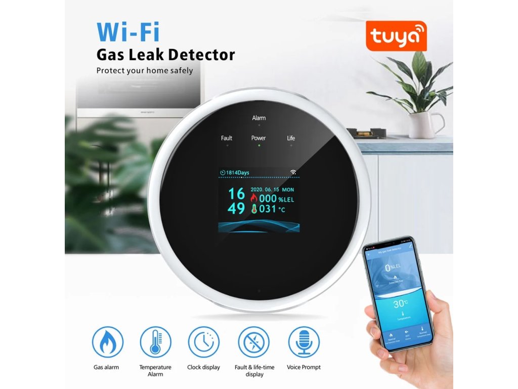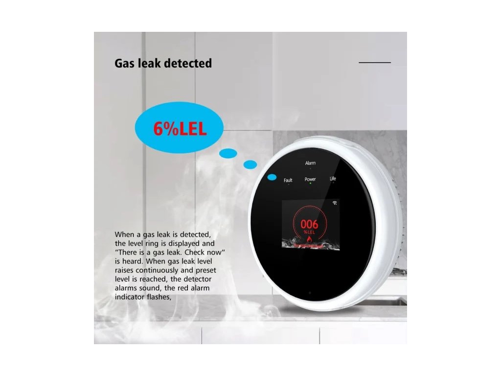 PST GS21 - Chytrá domácnost TuyaSmart - autonomní detektor úniku plynu, LCD displej, hlášení teploty